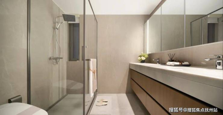 16项厨卫系统中,标配方太全隐升降款油烟机、三眼灶、15件套洗碗机。顶上有奥普凉霸,灶台有岩板背景墙,不只实用,还细致关照厨房的“清洁动线”。