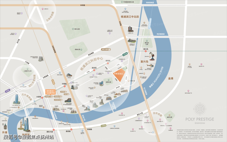 区位方面,该地块位于杨浦滨江南段的黄金位置,直线距离黄浦江仅约500米。