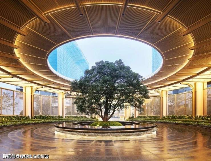 【下沉庭院】庭院巧妙利用约6米的高差,营造出丰富的空间层次感,中央布置大面积立体镜面水景,如诗如画。