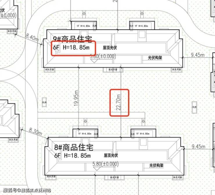 这也就是说楼栋南北向间距基本都不小于遮挡建筑的高度。