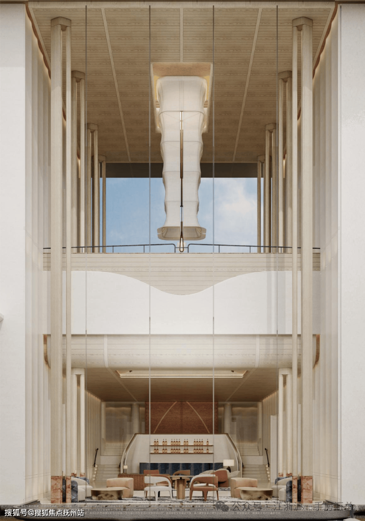 项目配建地上架空层泛会所+地下会所,以及下沉式庭院会所,打破人与空间边界的架空场域。会所设计整体空间祛除浮华矫饰,始终让景观以人为核心展开,整体景观规划以悬挑水池将⽔引⼊下沉⾃然⽔院,利⽤⽔幕链接,打造多层次景观,宛如⼀幅变幻的⽴体流动画作。会所区域配置风⾬连廊,以⽔景、绿篱、休憩平台串联,移步异景。