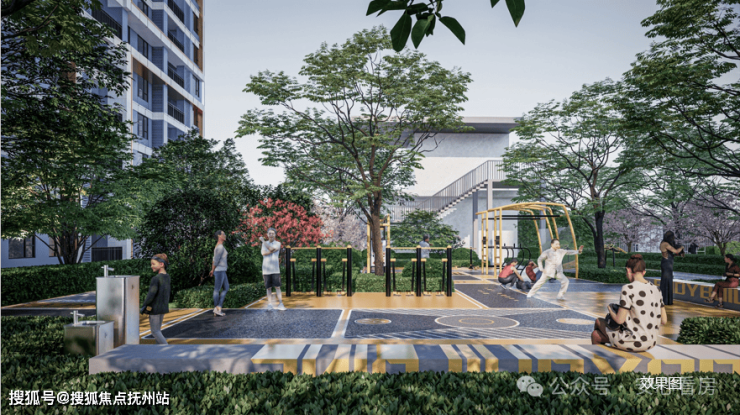 项目打造了全龄段活动趣乐空间、亲子陪伴空间、长者健身空间,以及健康运动环,600M超长跑道串联起各处超1600㎡的乐活运动场地。