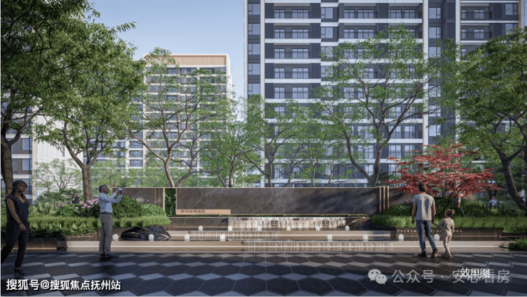 项目将打造对景墙景、阳光草坪及林荫树阵等增加业主的入户体验,在迎宾区域打造出人、山水、树木共融的礼序之境