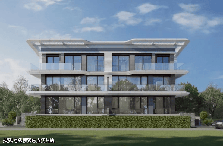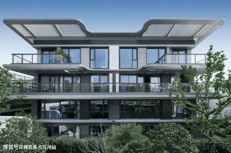 Riva Villa里湾墅——合院与排屋的外立面,均采用了流线性的铝板线条将建筑进行全方位包裹,颠覆传统住宅立面的平铺直叙,用玻璃和铝板镶嵌出灵动的曲线,让曲线不再是“上帝的专属”。
