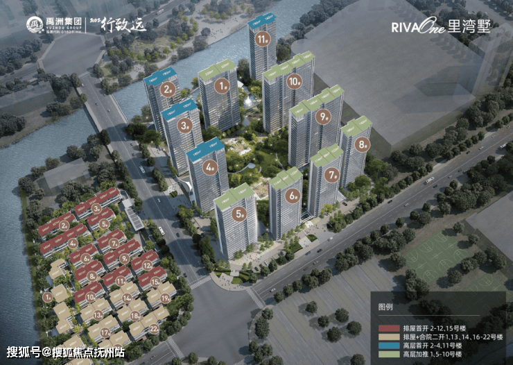 设计师在低层地块规划场地时将合院大户型靠西侧河岸放置,排屋置于地块内侧,使其曲线如行云流水一般,层叠有致,曲水悠然。