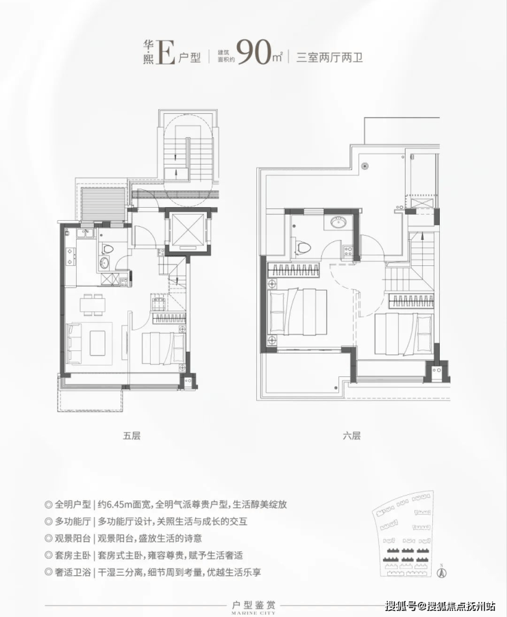 楼层状况:56幢(25幢高层住宅楼、31幢多层住宅楼);当期:9幢18层高层、6幢6层叠加、5幢4层叠加。 2733户(住宅 2501 户 ,保障房 232户);当期:1055套(968套商品房)