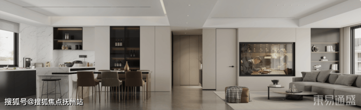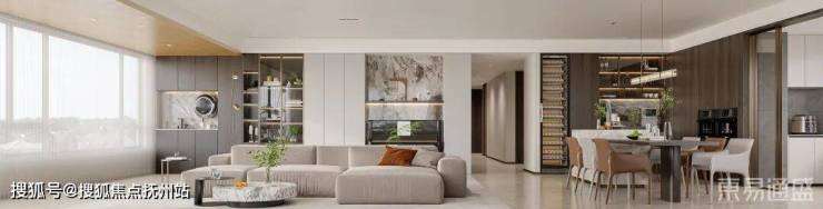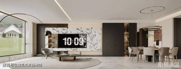 在现代简约风格的大平层设计中,选择白色、灰色、黑色等中性色调作为主色调,搭配简洁的几何图案和金属元素,增加空间的现代感和时尚感。