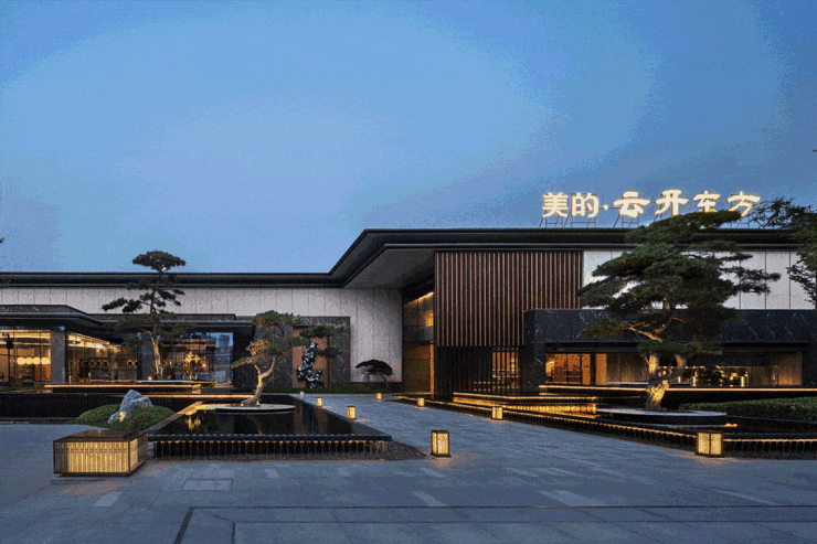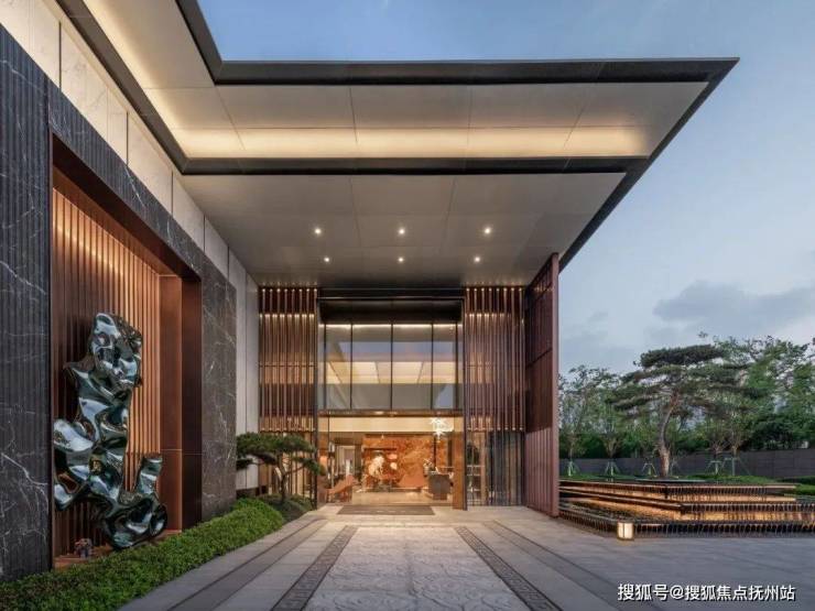 定制化社区大堂、宋氏美学园林社区与公建化社区立面,复刻东方意境。采用大面留白,匠造社区邻里空间,在入口处打造宋式美学园林的落客区,两侧设置有叠级式的迎宾水景,隔离了喧嚣的城市道路以及外界纷扰,留下岁月静好。