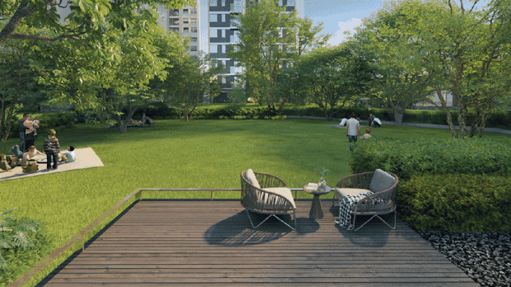勾勒由微风绿屿、冥想花园、愈心花林组成的「林间谧庭」,让人跳脱出日复一日的机械生活,重拾自然的疗愈。园区里还会有童玩伴盒 & 童玩场地 & 植物认知园&静心庭院&水榭林间&学习盒子&健身盒子等景观,每个年龄段人群,都能够在丰富的景观中找到自己理想的生活状态。
