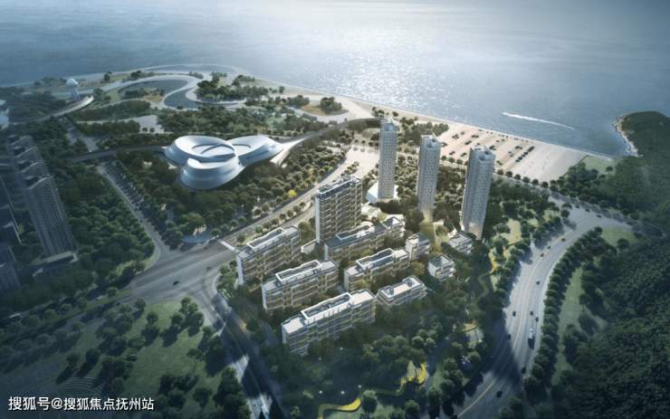 沿海高层南偏东30°,户户看海,实现海景视野最大化,空间引入多条景观轴线与山海渗透,打造松弛感的城市度假体验。
