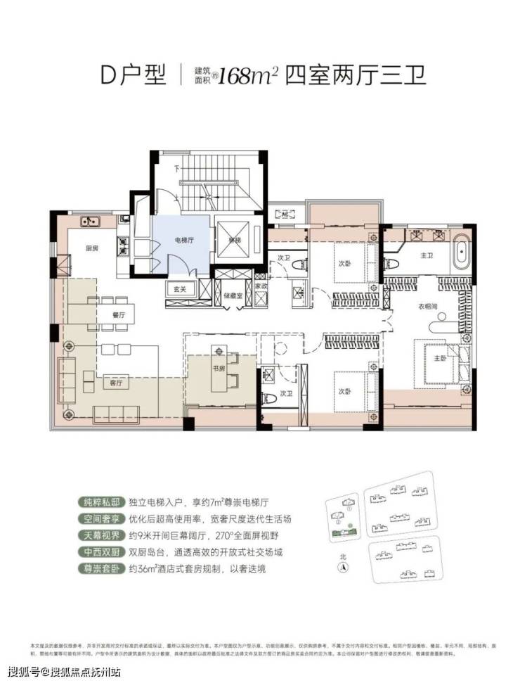 同时配置“南向晾晒+北向家政”双阳台体系,更显产品细节的极致追求。全维细节的设计配合四代新政,使得产品以远超同类竞品的得房率达到真正的负公摊,更进一步释放空间。