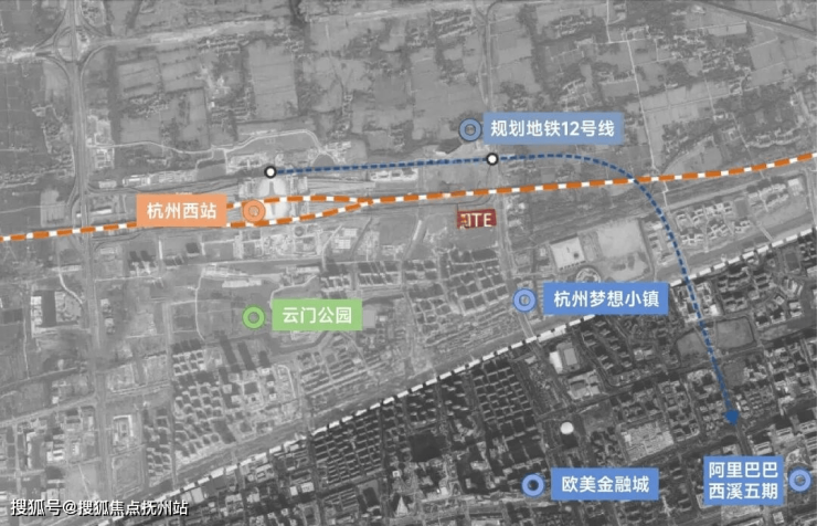 临近云门、未来杭州第一高楼约399米金钥匙(在建)、约320米金手指(在建)、浙江人才大厦、杭州资本云城科创中心(在建)、超重力实验室(在建)等云城核心地标。