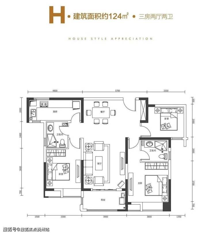 124㎡ 三室两厅两卫