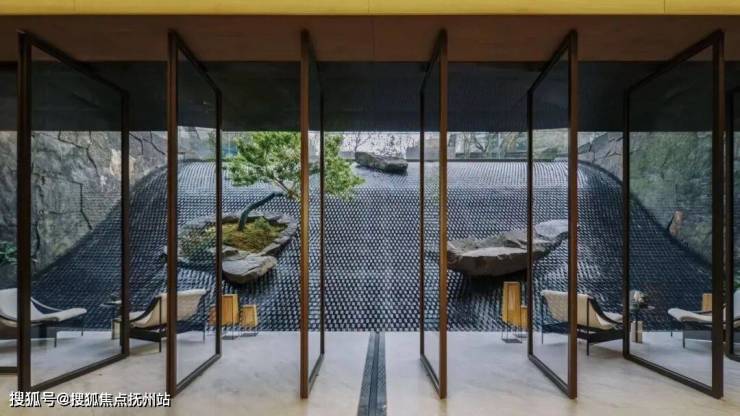 经过对仗门礼,步入项目接待大堂,穿过大堂,迎面便是下沉庭院。