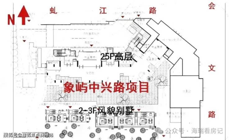 象屿·苏河琹庐规划有高层公寓+风貌合院别墅,高层为一栋25层高建筑,5-25层为商品房,一层6户,共126套,均为建面约100㎡小三房,该项目综合容积率2.67。