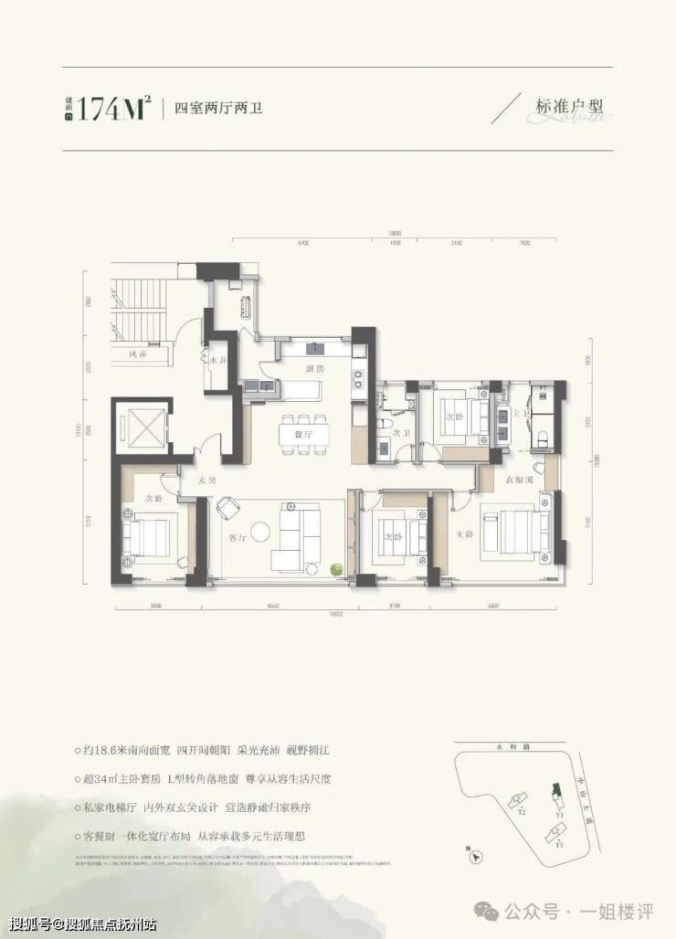 对于追求功能的精英家庭来说,建面约174平户型则是高性价比的典藏四房。