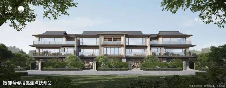 绿城在产品中提炼了歇山顶、重檐等经典形制,再以现代手法,将横向舒展线条、层次分明的挑檐加入构图,形成南北双立面的和谐统一。整体更以“屋檐、屋身、台基”东方建筑的经典三段式设计,简约中隐含贵气。