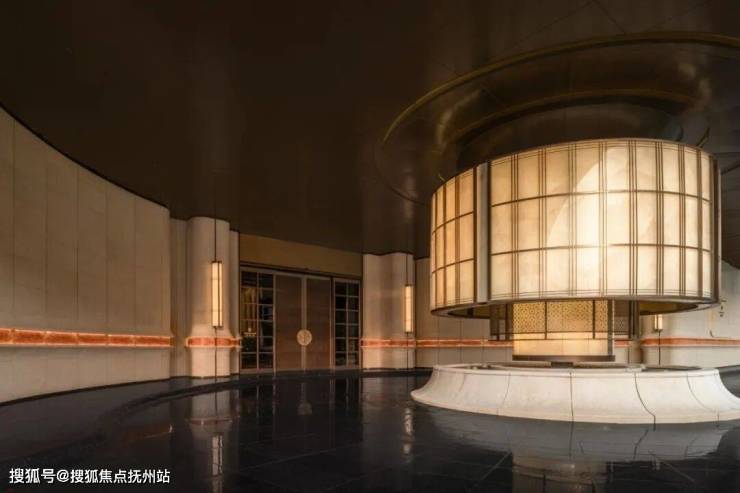 并且,用料相当奢侈:保加利亚进口的沉香米黄石材的底座,搭配以安哥拉黑大理石、透光云石,而大门精选伊朗进口水墨玉天然石材、两侧腰线搭配橙皮红石材,奢华典雅。迎宾楼内选用非遗金箔艺术画,每一幅的制作周期近3个月,可见用心。