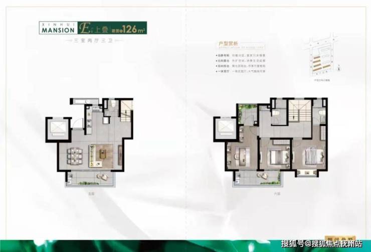 5复6的125㎡顶复户型,三房两厅三卫