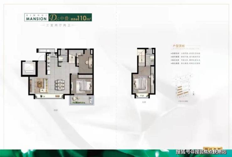4复5的105㎡中叠户型,三房两厅两卫