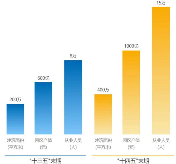 上海市西软件园,根据十四五规划,计划2025年实现建筑面积约400万㎡,经营收入达到1000-1500亿,从业人员达到约15万。