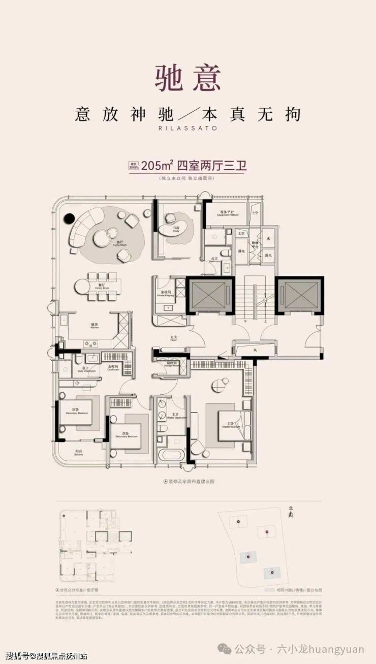 245㎡户型:四房两厅四卫,CCD郑忠设计,270°转角厅引运河入室,层高3.3米