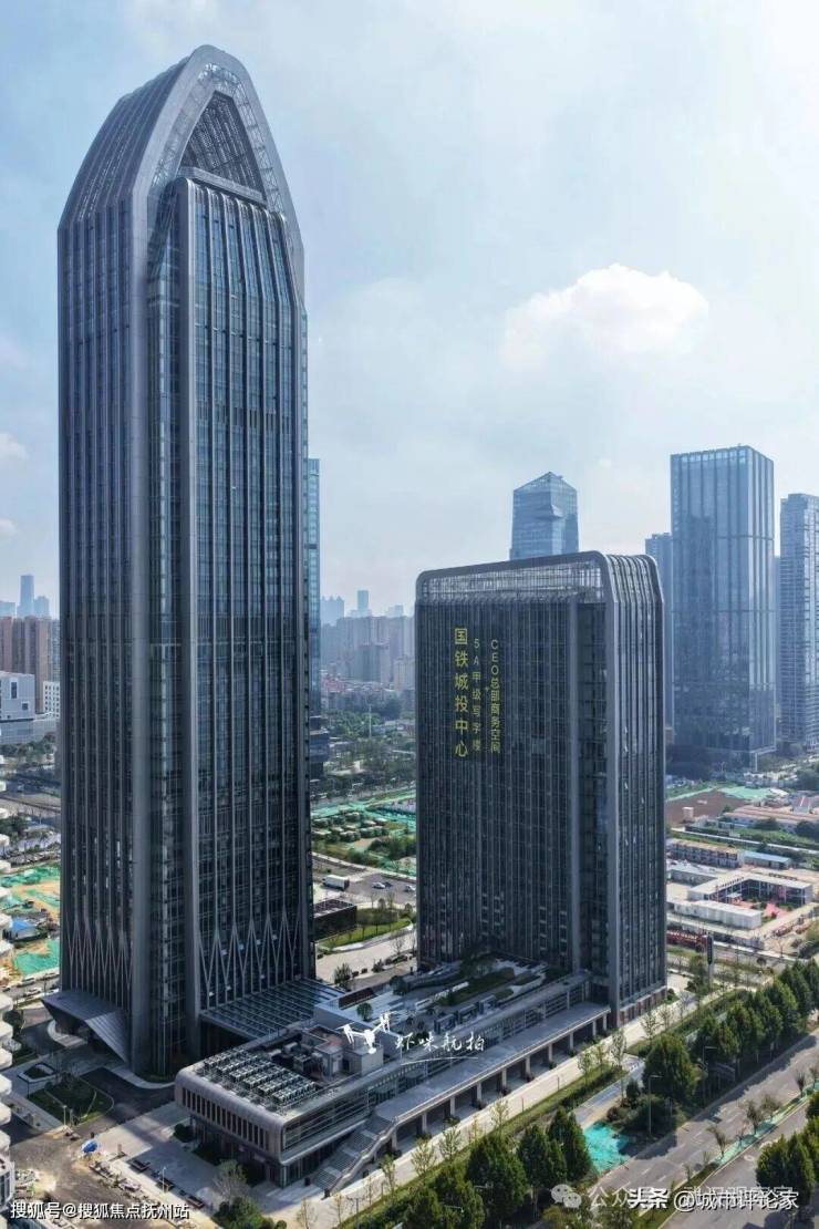 武汉国铁城投中心大厦,位于武昌滨江商务区核心地段,拥有270度一线观江资源,央企旗下的子公司长江沿岸铁路集团总部已落户该大厦,截至目前,中国建筑、中国中铁、中国铁建等央企所属14家企业,以及国铁集团所属的10家企业同步签约入驻该座大厦。武汉市将以这座摩天大楼作为基础,积极构建全国高铁科技产业新高地。国铁城投中心大厦造型奇特,犹如一把利剑,直刺苍穹,显得特别有力量感;这栋摩天大楼的外立面在材质使用上,使用的一些类似于铁轨轨道的金属造型,让整栋写字楼的建筑气质与铁路企业高度契合,给人耳目一新的感觉。特别值得一提的是,这个写字楼项目的裙楼建筑,拥有270度一线观景的平台和绿化步行走道,将生态景观和观景、商业办公完美融合,开创武汉市写字楼项目里程碑意义!依靠诸多的央企区域总部和关联企业落户该写字楼,武昌区的总部经济产业规模将会不断做大做强,打造新的千亿产业集群,让武汉成为全国高铁科技创新中心,意义十分重大。