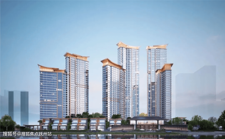 建发·望湖执领东方审美风潮,设计飞檐塔冠,屋檐轻盈起翘,有法无式,风姿瑰丽,展现千年东方威仪;更以大面积 LOW-E玻璃钻感天幕和铝板外立面,写意沙湖水韵波光;于首层设计大尺度挑檐,匠心规制归家礼序。中式和现代的风格碰撞,探寻东方构造的意境之美。