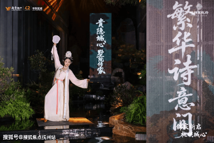 3D光影大秀,在夜幕中勾勒出临安古城轮廓与当代天际线的时空叠印,标志着越秀・观锦宸樾府实景美学示范区的正式启幕,也拉开了这场以“荷风夜宴”为主题的风雅聚会。
