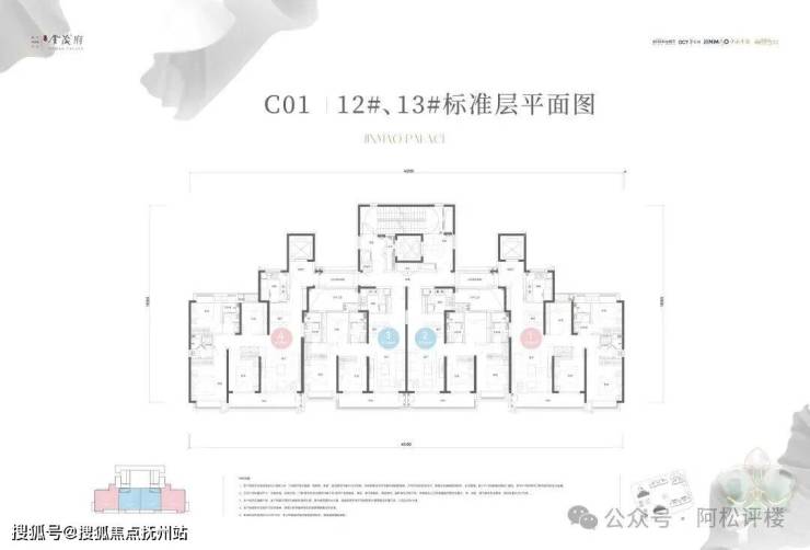 项目13号楼共46层,1个单元,3梯4户,边户有独立电梯前室,主推建面约113-139平毛坯房源。