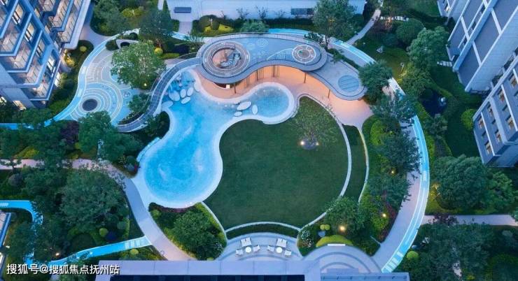 景观不仅是观赏的艺术,更是赋能美好生活的载体。宁波和颂望悦作为一个全年龄段的社区,真正做到了“适老适幼”。超引力客厅既是社交空间,也是亲子乐园。主体双层廊架,一层用于会客,一层用做儿童活动,中间位置配有约280㎡大型戏水池,营造家庭互动与儿童成长共融的活动空间。