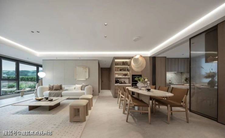 中海此次将产品外立面进行了创新,在外立面设计上,沿袭现代轻侘寂风格,设有屋檐设计,精美斜切角屋檐,此外还将木纹铝板材质运用到外立面,搭配银白灰色铝板、大面积通透玻璃窗,颜值很高。