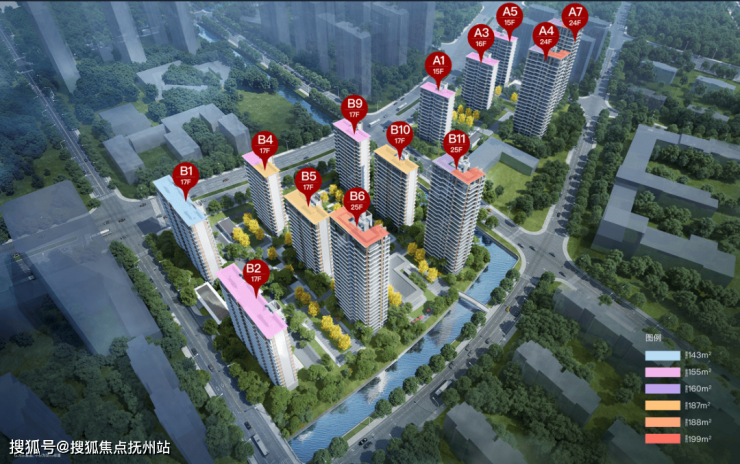以极限面宽、极限花园尺度为规划原则,形成南北两个组团,对内呼应城市空间氛围,对外塑造滨水城市界面。项目为一批次整体住宅开发,工程建设用地面积42011.9㎡,主力户型155-187㎡,同时还有199㎡的观江大平层以及350㎡以上的观江合户,自带滨岸会所,观江视角极佳。