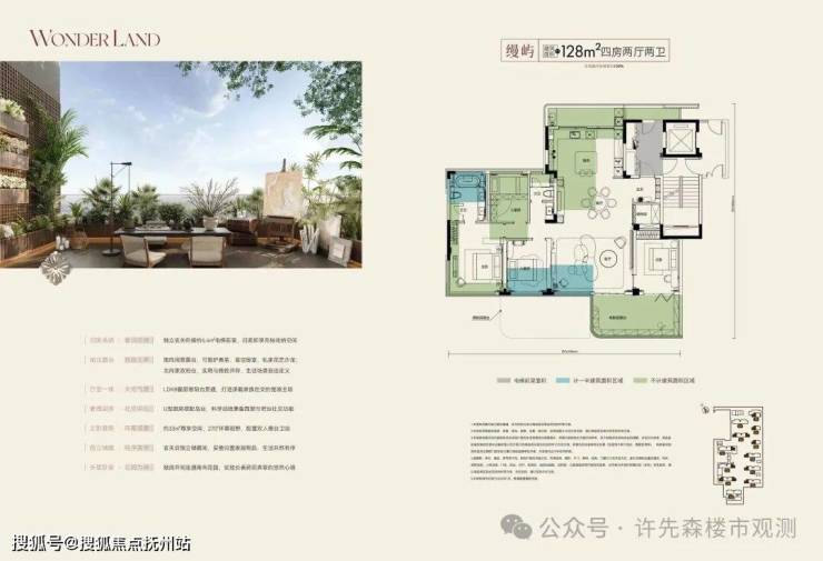128㎡四房两厅两卫:实得约170㎡,品质改善,270°环幕视野