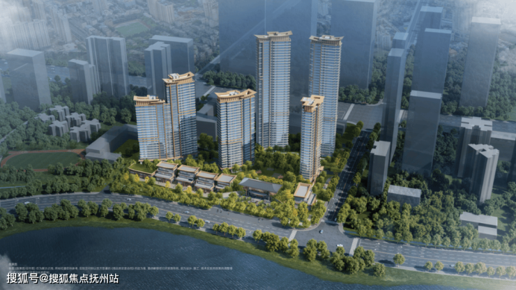 从效果图来看,项目整体采用了围合式建筑布局,5栋住宅基本沿沙湖一字排开。如此一来,每一栋楼、每一户豪宅都能实现极优看湖视野。
