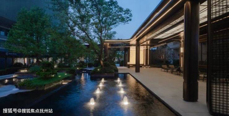 宽约54米的超尺度城市界面与定制式酒店入口大门,与悬浮式水景相映成趣,潺潺水声洗去尘嚣,瞬间将心境切换至度假模式。步入园区,匠心独运的多院落式主题花园布局如同一幅徐徐展开的画卷。
