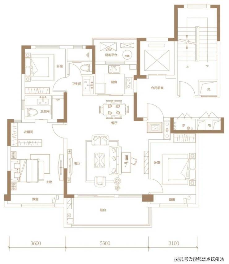 另一个主力三房户型,建面约103㎡,如果要为它的舒适度打分,几乎可以打满分。