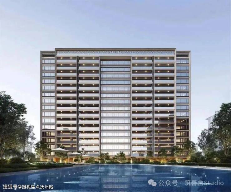 晓月沁园以其绿城Design3系的设计风格独树一帜,展现超扁平设计与简约立面线条的魅力,辅以大幅玻璃的巧妙应用,营造出一种视觉上的通透轻灵与简约豪华。秉承绿城一贯的精工品质,我们选用了香槟金“油画框”铝合金线条,精致的金属框边透出柔和的金色光泽,宛如东方审美的画作,镶嵌于建筑轮廓之中,并与浅灰色系玻璃搭配,捕捉每一缕自然光与目光。项目南立面特别设计0.4-0.45的高窗墙比例,以最大化室内采光和景观视野,使建筑在日光的映照下,成为城市中一道亮丽的风景。