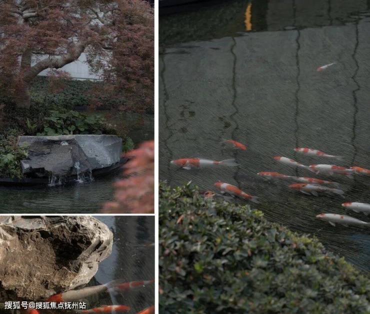 第一幅通过景墙的框景,使人们的注意力集中在中心的景观上,一松,一石,一池水便是画卷,文石水墨、无边静水,寓山于水,一静一动,动静之间又有无限深意,如《姑苏繁华图》中的一处缩影,松石相望,流水相伴;入口设置了三步台阶寓意:云接三级,步步高升,此外营造了两幅长卷画面。