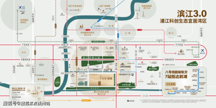 项目距离8号线延长线汇臻路站直线约1.4公里,同时近享BRT快速公交,7站抵达前滩东方体育中心,全线与14条轨交线换乘,通达全上海。