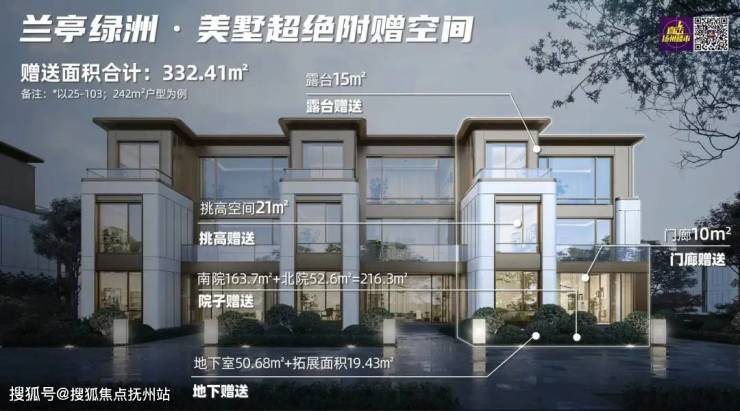买别墅,就是买想象力。兰亭绿洲·美墅赠送面积最高近380㎡,242㎡主力户型的赠送面积最高也达到近332㎡。