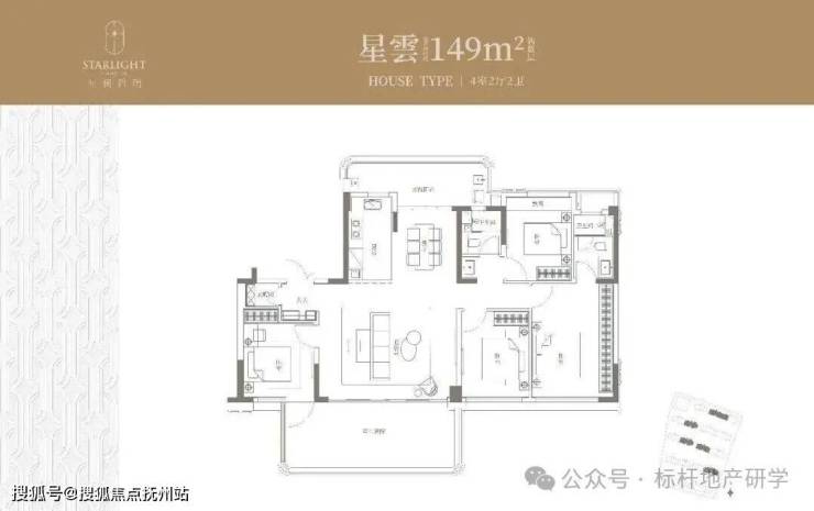 建面约149㎡(偶数层),4房2卫+4开间朝南+南北双阳台,还带来了独立储藏室、大横厅等。