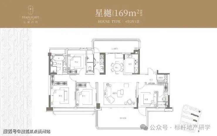建面约169㎡4房3卫(偶数层)做到了4房3卫双套房,全明卫,南北双阳台,很优秀的终改户型。