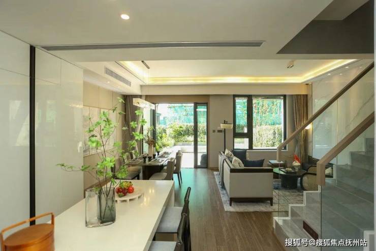 约7米开间挑空横厅,成就大器恢弘的礼宾空间,碾压崇明一切竞品。餐客厨的动线设计,打通空间流畅感,直面庭院,既保证空间明朗,又足够私密,真正做到让光来做设计