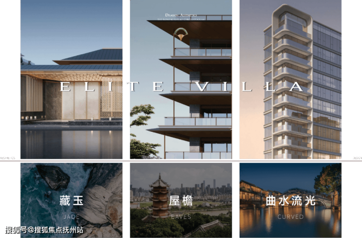 迎龙观月合院与叠墅建筑取意无锡龙光塔的飞檐神韵,以现代手法重构层层出挑的轮廓线,勾勒如翼舒展的东方意境。叠翠鎏金的立面,源自“运河如玉带,玉从石中来”的在地哲思——大运河不仅孕育生机繁荣,亦如温润美玉,承载人文祝福与自然馈赠。香槟金色铝板闪耀现代光泽,与白雪公主石材的柔润肌理、玻璃栏板的通透质感交织碰撞,在光影中书写一幅既有庄重气度又不失轻盈诗意的当代立面画卷。