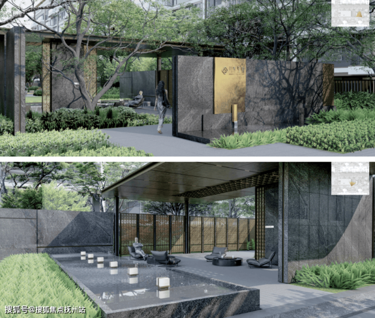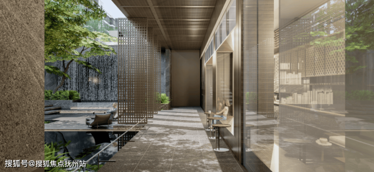 借助架空层的高差及平台下空间,宜禾春江府打造了下沉式园林。