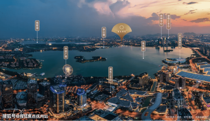 项目所处的“黄金十字”地带,北接湖西CBD的摩天楼宇群,西承姑苏古城的千年文脉,东揽金鸡湖与独墅湖双湖浩渺。这种“一面城市、三面环湖”的格局,实现了繁华与静谧、现代与传统、都市与自然的微妙平衡。步行可达苏州中心、李公堤、文化艺术中心,让顶配的城市资源成为日常背景。