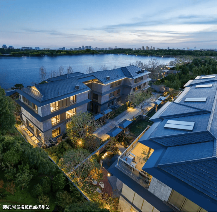 临水处,低密揽湖合院横向披檐以留白之艺勾勒从容轮廓,首层360°洄游厅堂,以大幅通透的窗地比令建筑立面剔透如艺术。一层一居的奢阔尺度,奢享湖岛巨幕生活,让家如生长于湖畔的绿岛,营造流动的“自然光剧场”。