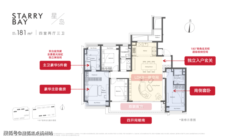 面积约181㎡四房两厅三卫户型↓↓