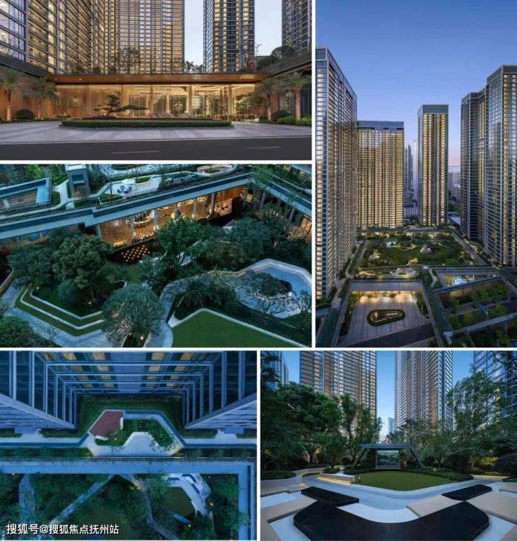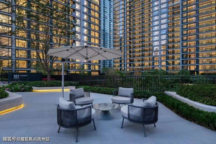 景观则为现代都市度假风格配套,园区绿意与建筑的完美配合,减弱超高层建筑的压迫感,增加园区使用的舒适度,达到居则悦的品质、归则隐的自然,给予客户极致的居住体验。